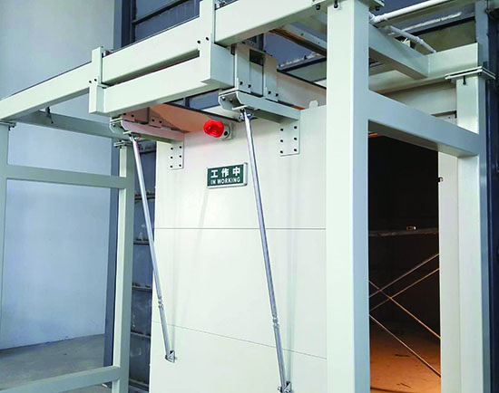 全自动双轨道设计,直流步进电器驱动,启动时门扇做横向、纵向移动,实现门的开启和关闭。整个过程由三菱可编程序逻辑控制器、触摸屏控制,操作简单,多点位置传感器以及急停装置,多重保护,运行精确平稳,安全可靠,尺寸可根据用户要求定制。
